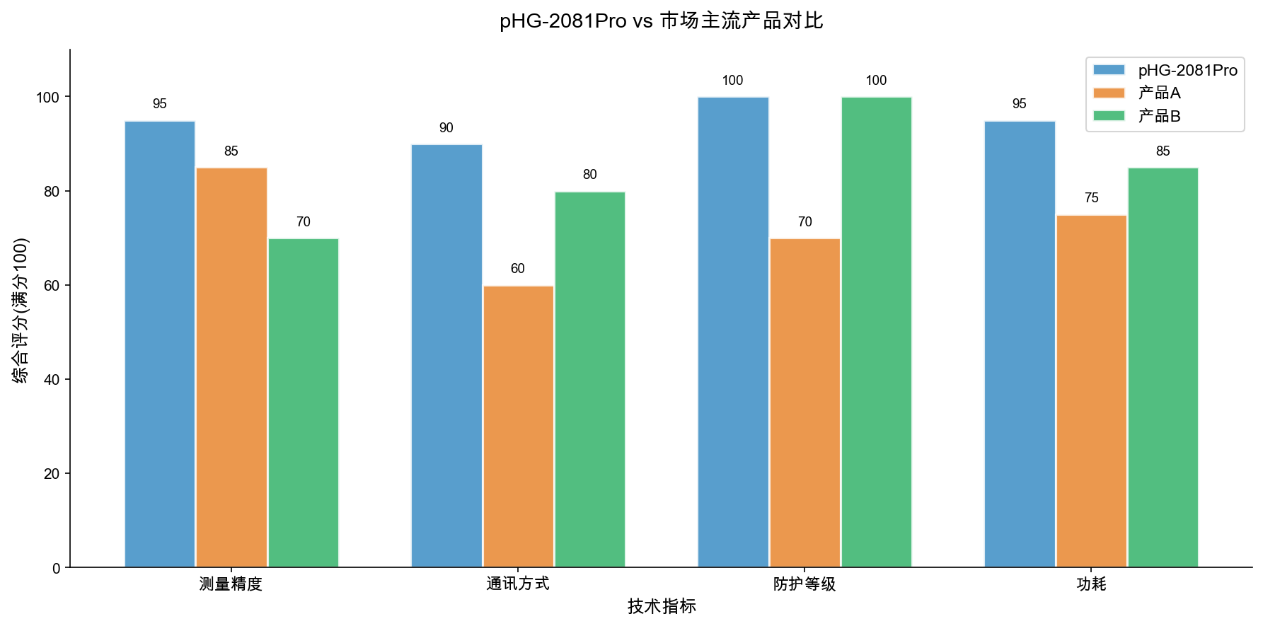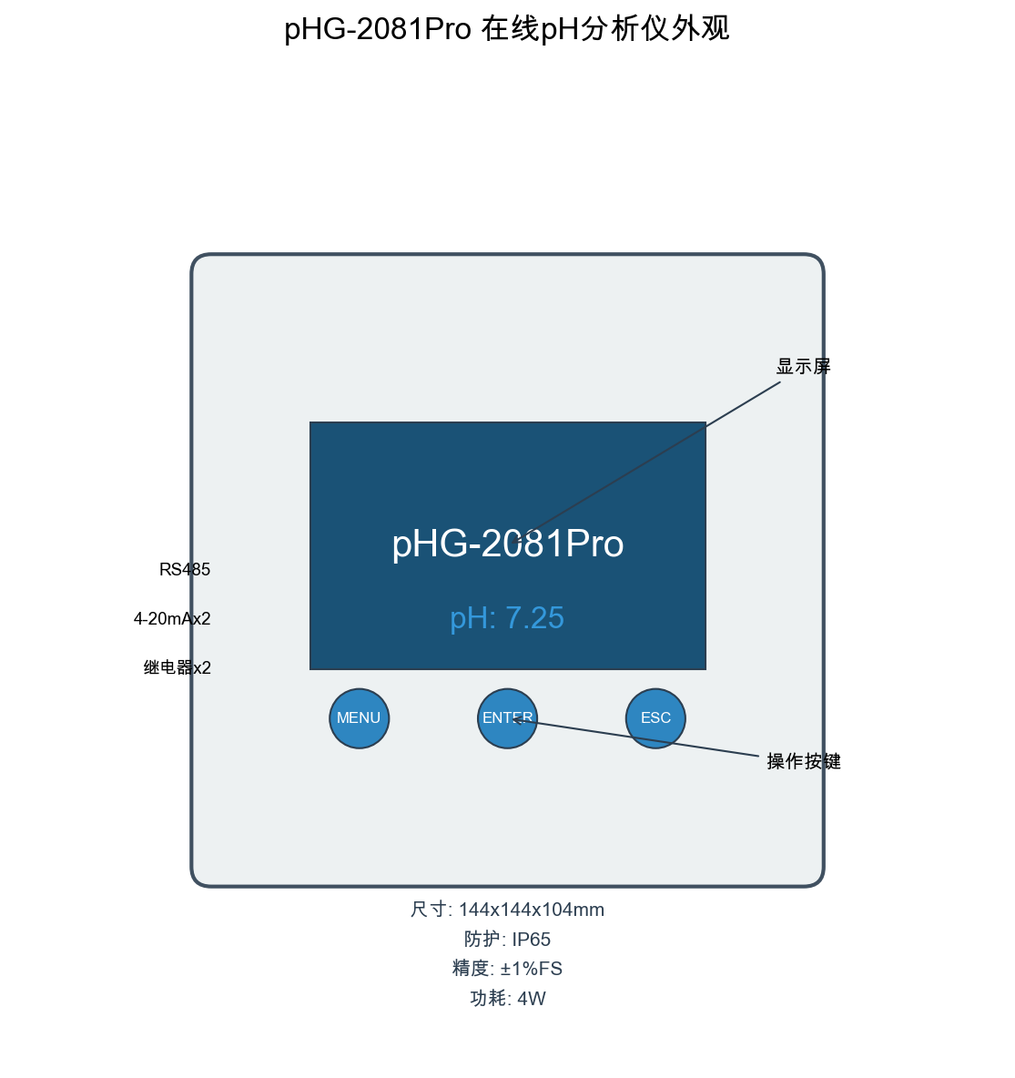1. 1. 测量精度: pHG-2081Pro ±1%FS精度,0.01pH分辨率,满足化工、水处理、制药行业要求。